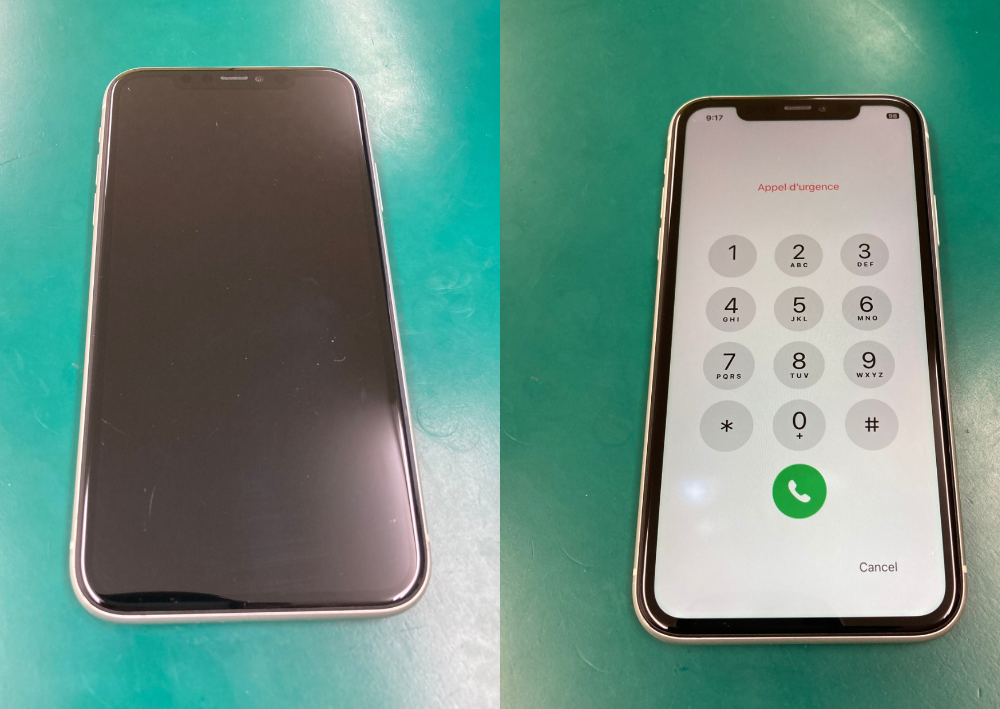 【写真右】基板修理後はiPhoneを使えるように。ただし、このiPhone11は状態が良くないため、長く使えない可能性があります。