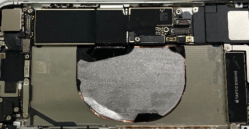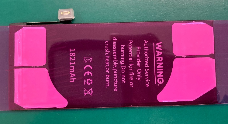 ↑の写真は、iPhoneSE2のバッテリー交換をご依頼いただいた際に、他店にて一度交換されたバッテリーを取り外したときの写真です。